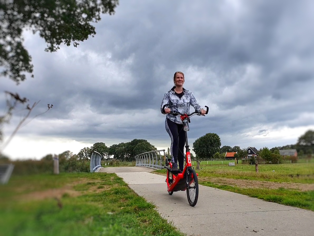 Toevallig had ik een aantal dagen voordat ik de Elliptigo zou gebruiken een event met Anita gehad. Tijdens dit event gingen we ook met Elliptigo een mooie grote ronde gingen afleggen. Zelf was ik toen aanwezig op de fiets, want ik was nog maar net uit het gips. Tijdens die dag was ik de ‘bezemwagen’ op de fiets en kon ik ook afwisselen met wat meiden op het moment dat ze even wilde fietsen. Hierdoor had ik onder begeleiding van instructeurs mijn eerste (kilo)meters al mogen maken op een Elliptigo.