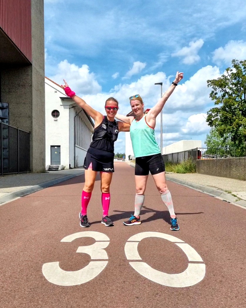 Ik ben namelijk geen warm weer loper, het lukt me moeilijk om vroeg op te staan en voor het werk uit kan ik niet ontspannen lopen. Ik ga dan gehaast/gespannen lopen en dan loop ik blessures dus dat is geen optie. Ik ben niet in vorm en besluit dat het vooral belangrijk is dat ik blijf trainen en de kilometers maak. Ik heb tijdens de trainingsperiode veel moeite met de lange afstanden (alles boven de halve marathon) Ik ben dan ook enorm blij dat op het moment dat ik Mirjam vroeg om samen een lange duurloop te gaan lopen, dat ze een ronde van 30 km had uitgekozen. Het ging niet soepel, het ging helemaal niet makkelijk en ik had ook zeker rust momenten nodig. Echter had ik de kilometers wel gelopen. Eerder dan verwacht maar ik was enorm blij en trots.