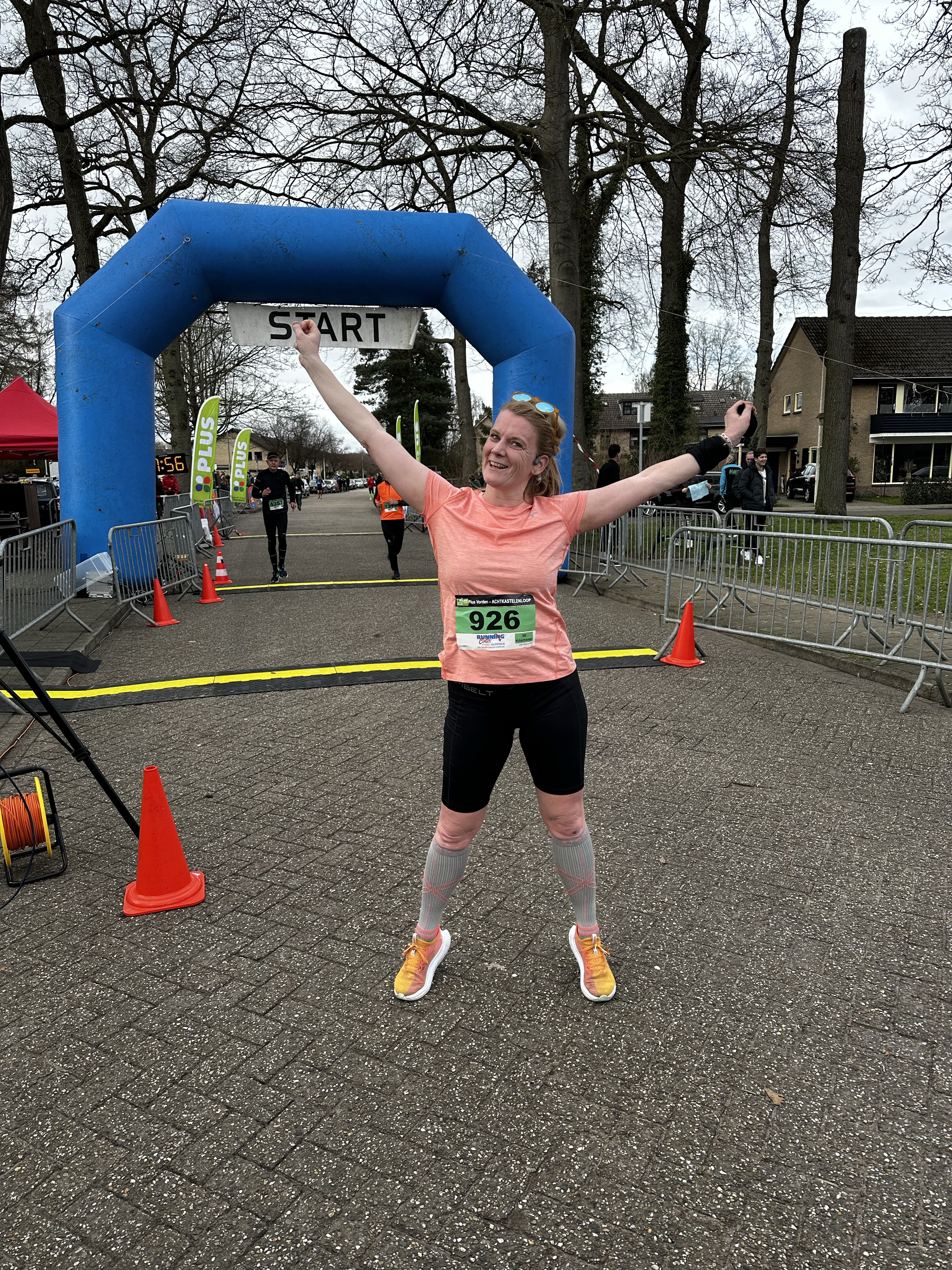 De voorbereiding in de week qua lopen ging prima, het was in principe een ‘rustige’ loop week, maar ik wist al dat deze wedstrijd niet op het meest gunstige moment was gepland. Het was namelijk de dag na de verjaardag van mijn man. Ik bereidde me de dag ervoor dus goed voor al wist ik nog niet precies wat ik aan wilde trekken, ik vond het lastig met het weer. De verjaardag van mijn man was die avond en omdat ik niet wilde dat het anders zou lopen dan anders, sliep ik vervolgens om 2 uur in de nacht i.p.v. lekker op tijd zoals je normaal zou doen. Het is wel een mooie oefening omdat ik in Boston wel zit met het tijdsverschil en niet weet hoe mijn lichaam daar op gaat reageren. De wekker ging op tijd en de nacht was vooral onrustig. Niet wetende hoe de vorm zou zijn deze dag ging ik met gezonde spanning richting Vorden.