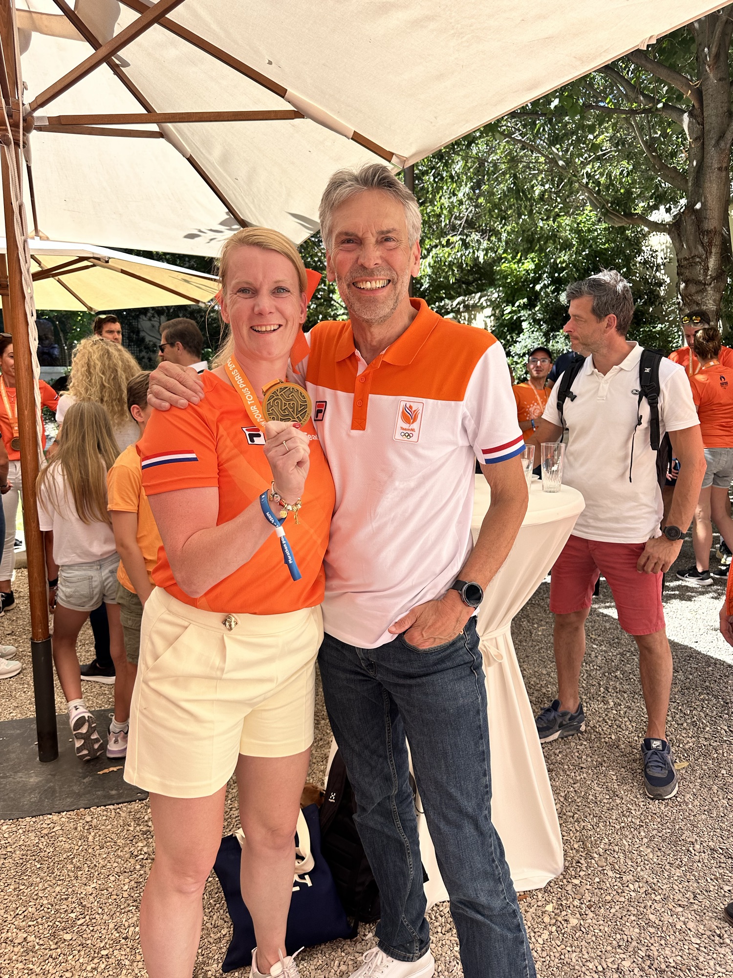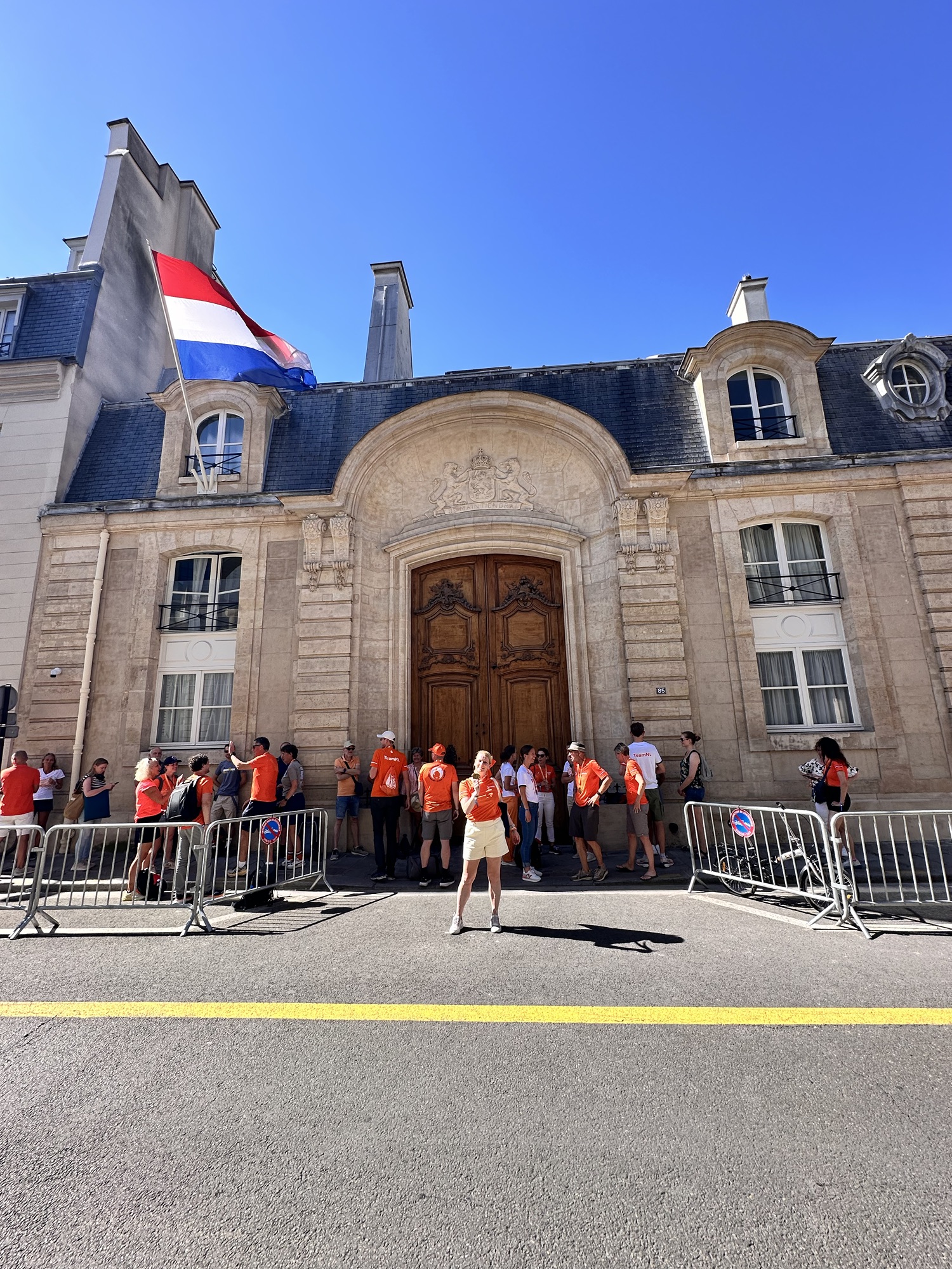 Het is ondertussen half 3, ik maak wat foto’s spreek met nog een aantal mensen uit de appgroep en loop naar het uiteinde. Ik krijg een beker en verderop kan je deze laten vullen met water. Ik ben het water ondertussen wel echt zat (niet het lekkerste water) maar weet ook dat het goed is om te drinken. Wanneer het finish gebied uitloop staat mijn man daar op mij te wachten. Er staat veel te eten wat je zelf mag pakken. Ik neem een stuk fruit en we lopen samen naar de metro. Als we daar aankomen blijkt de rij om bij de metro te komen boven te wachten, dus buiten. Ik heb geen zin in drukte en heel veel mensen vlak om me heen en vraag mijn man of hij het erg vindt om te lopen naar het hotel. Dit besluiten we te gaan doen. Stiekem hoop ik dat er ergens nog een kroegje of avondwinkel open is, ik zou wel een finisher biertje willen drinken, maar helaas. Na een uur lopen komen we aan bij het hotel. Om iets voor 5 lig ik gedoucht en al in mijn bed, ik ben moe en kapot en wil de volgende dag weer naar het supporterspunt om ook Sifan aan te moedigen, maar wanneer om 7 uur de wekker gaat begin ik de dag in bed tot ik op moet staan om te gaan ontbijten. Bij het ontbijt zie ik Sifan winnen en dan begint onze dag, de dag waarbij we uitgenodigd zijn bij de ambassadeur, waar de minister president ook nog even aansloot en die we afsloten bij het Team NL huis. De Marathon pour Tous wat een ervaring! Nu op naar New york de laatste van de 6 majors!